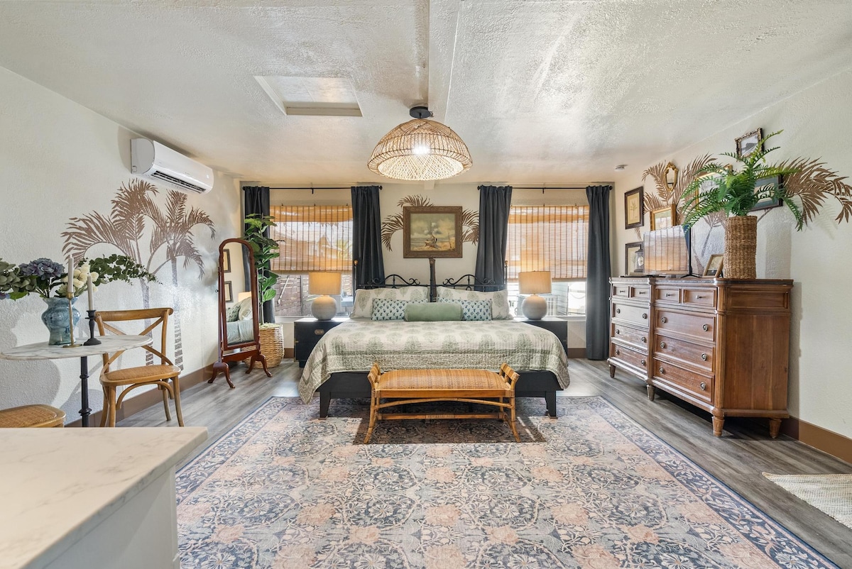 Эта красивая студия в стиле Ки-Уэст с кухней и WI-FI расположена в историческом районе парка Фламинго. Рядом с ресторанами, центром Розмари-сквер, Художественным музеем Нортона, конференц-центром WPB, международным аэропортом Палм-Бич, прибрежным водным путем и в 5-10 минутах езды от Уорт-авеню в Палм-Бич и Палм-Бич. Мы рады парам, одиночным и деловым путешественникам, которые могут насладиться частным гостевым люксом на заднем дворе с бассейном с соленой водой и спа-салоном.