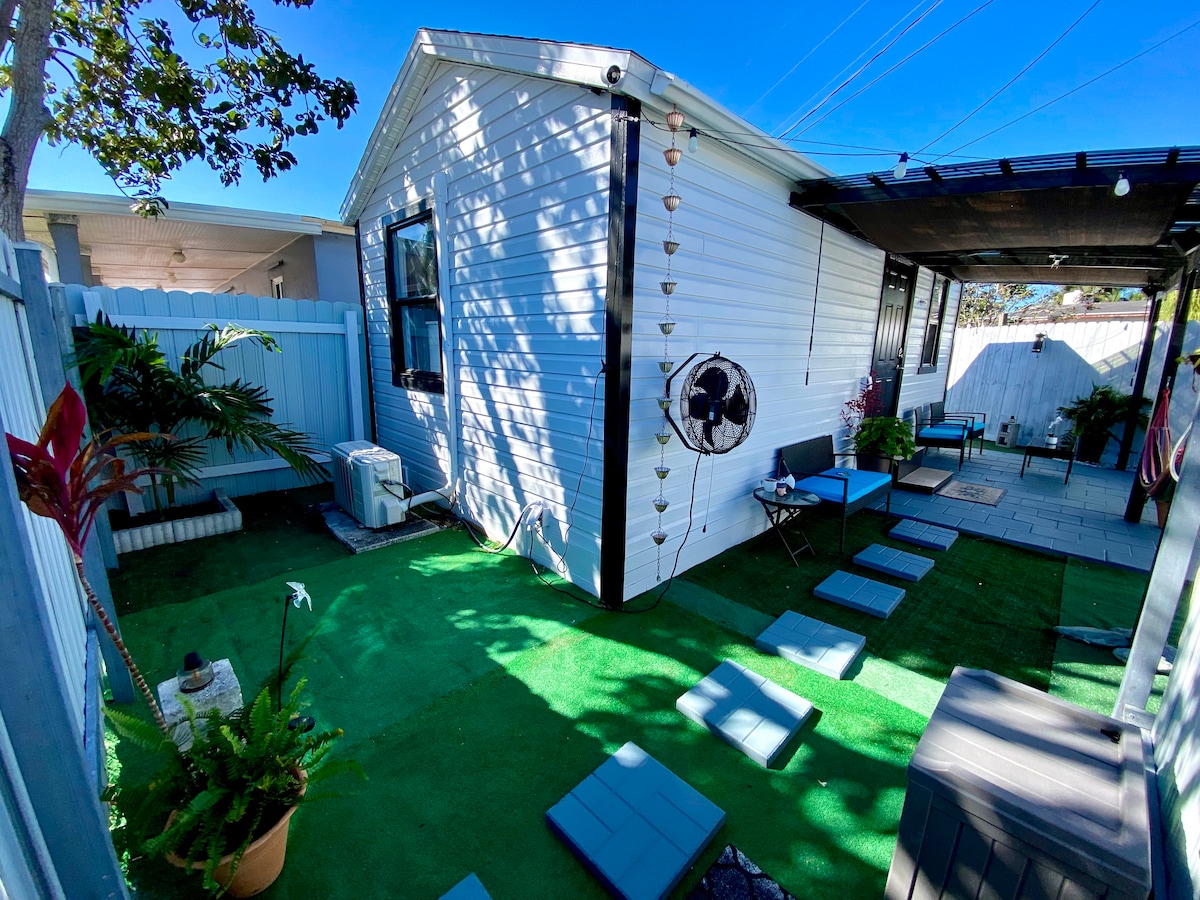 Хотите отдохнуть? Гамаки, гидромассажная ванна и отдых! Вы арендуете частный гостевой дом, расположенный на красивой территории всего в нескольких минутах от центра Уэст-Палм, пляжа и аэропорта. Недавно отремонтированный коттедж с огромным шкафом. Общая гидромассажная ванна и задний двор Смарт-телевизор с Wi-Fi холодильником. Тостер и варочная поверхность Мило и средства для волос в микроволновой печи Свежие полотенца, отдельный вход с бесплатной внеуличной парковкой.