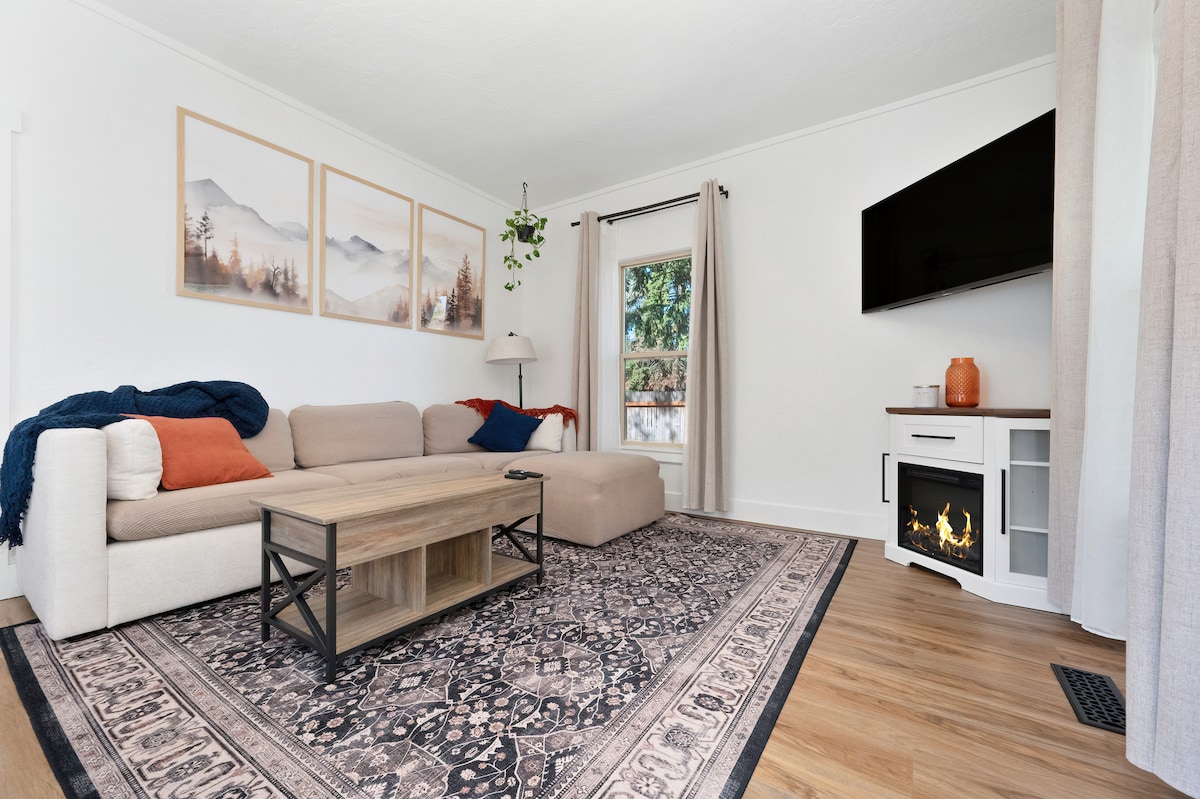 Это обновленное в 2024 году бунгало с 2 спальнями, 1 ванной комнатой, хорошо оборудованной кухней, барным столом с табуретами, новой мебелью и коврами, электрическим камином, 60-дюймовым телевизором высокой четкости с Roku, полной (ОЧЕНЬ маленькой) ванной комнатой и новой стиральной машиной. Большой закрытый задний двор - отличное место для отдыха. Для начала вашего пребывания предоставляются кофейные капсулы, сливки, шампунь, мыло и т. д. До озера CDA, Tubbs Hill и Sherman Ave можно дойти пешком до всех магазинов, кофеен и сказочных ресторанов. Разрешенная УЛИЦА.