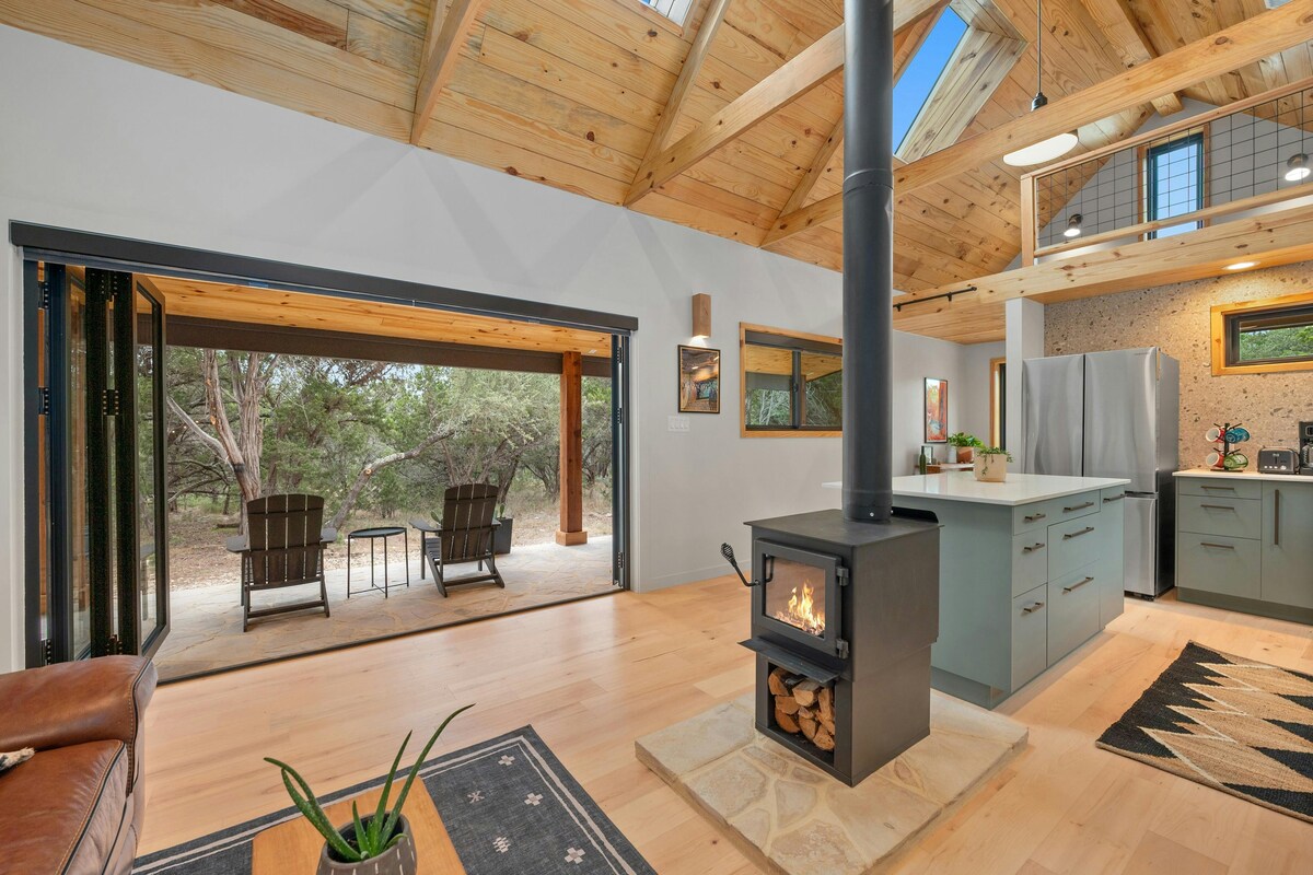 Расположенный высоко на холме с видом на великолепный холм Техас-Хилл, самый потрясающий дом-шалаш, который вы когда-либо видели. Благодаря сочетанию стиля середины века и творческим штрихам это пространство великолепно. Хижина спрятана в кармане природы, окруженном 3 акрами дубов, вязов и юниперов. Огромные передние окна и приподнятая палуба обеспечивают невероятный вид на закат через холмы, а освещение темного неба создает атмосферу захватывающего звездного неба. Гидромассажная ванна и душ на открытом воздухе вишенки на торте!