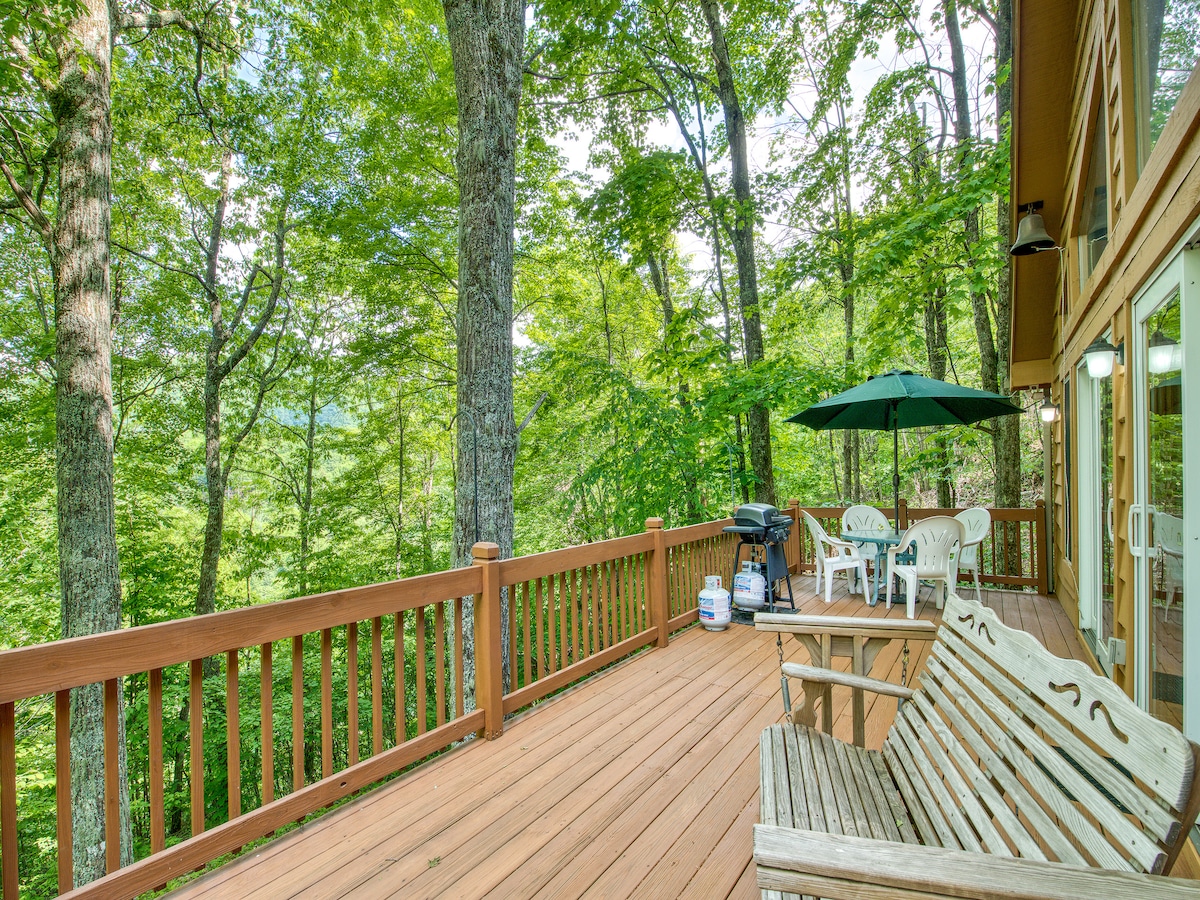 Наш домик был построен более 50 лет назад и полностью отремонтирован в 2021 году. Мы находимся в 40 милях от аэропорта Эшвилла; в нескольких минутах езды от горнолыжного курорта, Blue Ridge Parkway, казино Harrah 's и поместья Билтмор. Поблизости есть пешеходные тропы, лыжные трассы и горячие источники. Расслабьтесь на крыльце или приготовьте барбекю на костре. Просторная кухня для семейных обедов; ванные комнаты на обоих этажах и несколько зон для встреч. Уютно устроиться у газового камина, послушать музыку или собрать пазл в уголке. Легкий доступ, вилка для электромобиля 14-50.