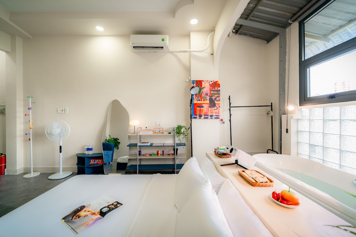 **Разрешена только ручная фото- или видеосъемка: без штативов, пожалуйста, поцарапайте пол** - Большие окна выходят на улицу с тамариндскими деревьями и на французскую архитектуру колониальной эпохи в нескольких шагах от центра самого оживленного города Вьетнама. - Остановитесь в моей квартире, которая находится на 3-ем этаже ( без лифта ), в тихом чистом районе. - Квартира рассчитана на комфортное размещение 2. - Одна двуспальная кровать размера Queen size с удобным матрасом. - Телевизор Android TV 55 дюймов с хорошей акустической системой создает хорошую атмосферу для фильмов или отдыха по ночам. Доступны Chromecast и Apple TV 4K. - Доступно 22 дюйма iMac для поиска информации с помощью высокоскоростного Интернета. - Кухня полностью укомплектована кофе, чаем и кухонной техникой, чтобы можно было приготовить домашнюю еду с посудой, тарелками, ножами , вилками. - Стиральная/сушильная машина также готова. Транспорт ко мне: - Такси: из международного аэропорта Тан Сон Нхат вы берете такси до улицы Нгуен Хюэ (центр города 1, HCM City), и вы в 1 минуте от моего дома. - Здание « 90 Nguy ¥ n Huệ street » до моего дома полно бутиковых кофеен и художественных галерей. Не торопитесь, чтобы насладиться эссенцией города. - Автобус: если вы планируете пользоваться общественными автобусами, сядьте на автобус 109 и доедьте до моего дома примерно в 5 минутах ходьбы. Все оборудование и удобства в вашем распоряжении. Я работаю в индустрии F&B и внештатным фотографом в течение многих лет в HCM City; таким образом, не стесняйтесь поговорить со мной или давайте потусуемся в кафе, чтобы обсудить местные кухни, изобразительное искусство, фотографию в вероятном случае, который может вас заинтересовать. Из больших окон открывается вид на улицу с тамариндными деревьями и французскую архитектуру колониальной эпохи, всего в нескольких шагах от центра самого оживленного города Вьетнама. В самом здании полно бутиков, кофеен и художественных галерей. Вы буквально будете жить в центре Хошимина. 3 минуты до финансового башни Bitexco, 10 минут до центрального автовокзала Бена Тхань и такси прямо перед вашей дверью. Собирайтесь исследовать Сайгон – Жемчужину Дальневосточного