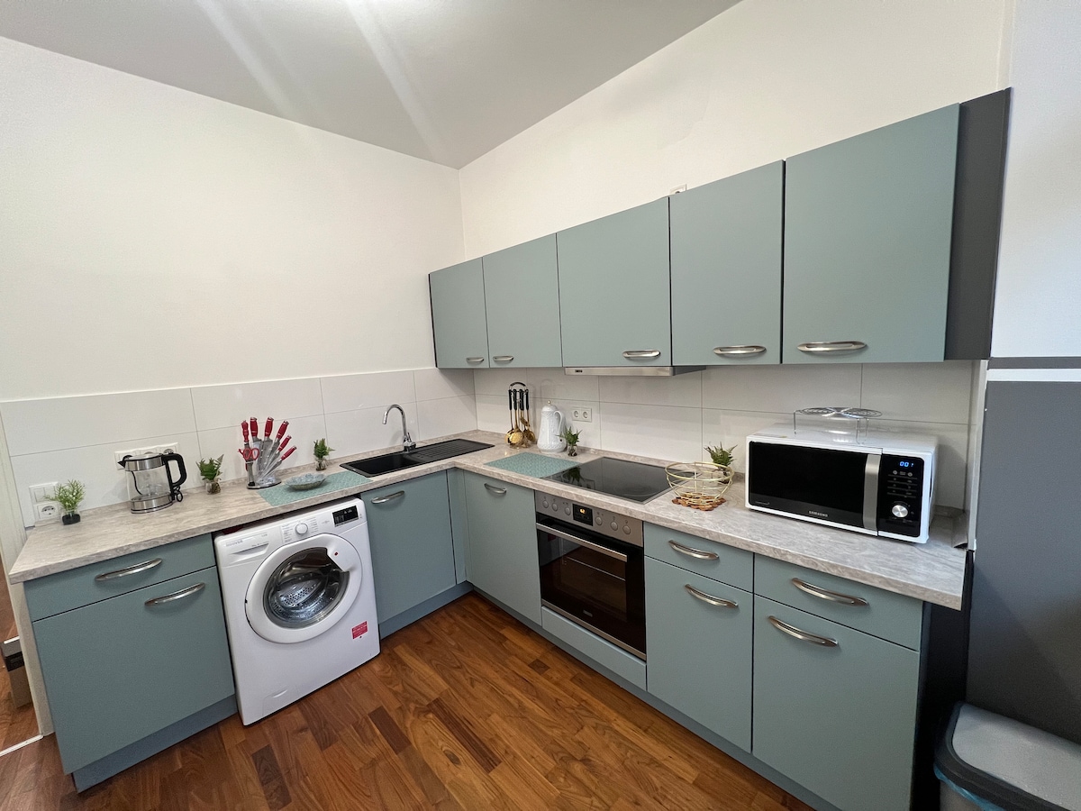 Эта стильная и полностью меблированная однокомнатная квартира с собственной ванной комнатой и кухней расположена в центре исторического центра Гейдельберга. В главной комнате есть кровать 160x200 см, место для хранения, диван и рабочее место. Кухня полностью оборудована, в ванной есть стиральная машина. Большой балкон, выходящий во двор, простирается по всей длине квартиры. В районе есть все для повседневных нужд: супермаркет, пекарня, аптека, бары, кафе, рестораны,...