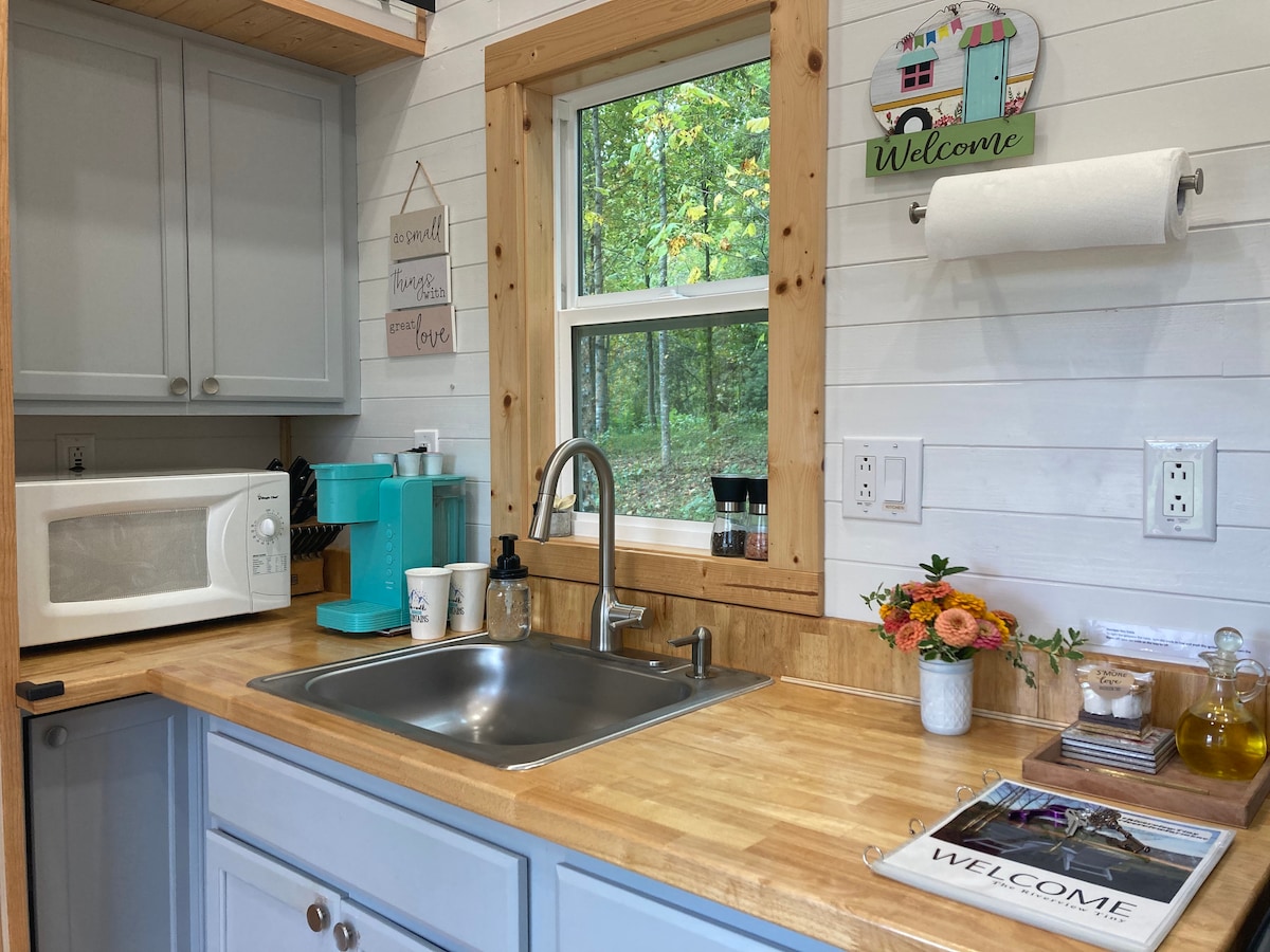 Остановитесь на органической ферме площадью 35 акров с доступом к реке Френч-Брод. Наш просторный крошечный находится прямо через реку от пивоварни Sierra Nevada Brewing и в 15 минутах от дендрария NC, аутлетов Эшвилла, пеших, велосипедных и изысканных ресторанов. The Riverview Tiny может похвастаться большим видом из гостиной и спальни внизу. Лофт отлично подходит для детей. Отдохните на крыльце с панорамным видом на ферму. 15 минут до аэропорта Эшвилла и 30 минут до поместья Билтмор.