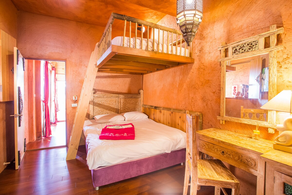 Элегантная деревянная отделка, просторная двуспальная кровать, светлый и вентилируемый балкон, собственная ванна, 3 минуты ходьбы до пляжа, недалеко от ночного рынка Кэньдин, модный двухместный номер