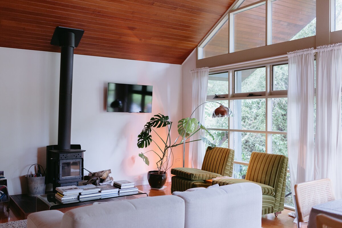 The Hepburn Treehouse - это рай в центре живописных Hepburn Springs. Это индивидуальное жилье для двоих спрятано среди деревьев в потрясающем домике-студии A-frame с вдохновленным стилем середины века. Тщательно и с любовью подобранная и наполненная личной мебелью, предметами и книгами, собранными со всего мира. Окна от пола до потолка, роскошное постельное белье, дровяной огонь, высокие потолки и гидромассажная ванна обеспечат незабываемый отдых в этом спокойном домике на дереве.
