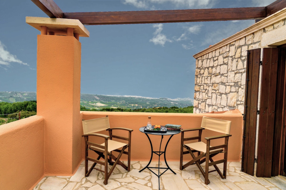 Our villa, part of CretanRetreat, offers beautiful views in a peaceful location, ideal for families, couples, and explorers. 98 m², 25 min from Heraklion, 15 min from Knossos, 30 min from the airport. ‣ 3 Bedrooms ‣ 2 bathrooms ‣ 2 Queen beds ‣ 4 Balconies ‣ Garden ‣ Parking onsite ✭“One of the best Airbnb's we've stayed in! Great location with wonderful views and very peaceful, surrounded by olive groves. The Villa is full of character and an ideal location to visit Knossos and Heraklion”