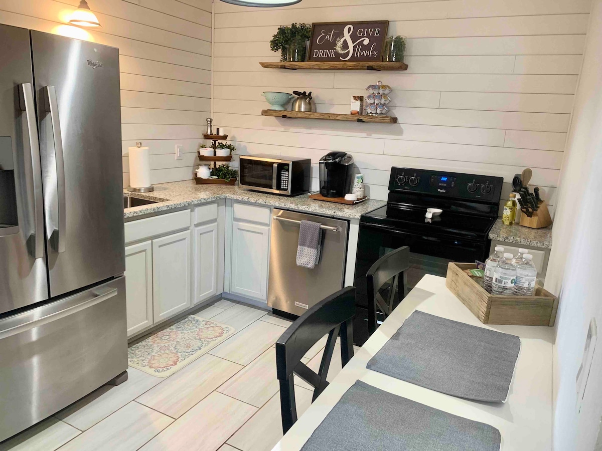 **Симпатичная, НЕДАВНО ОТРЕМОНТИРОВАННАЯ квартира-гараж наверху с мини-кухней в университетском городке Каньон, Техас** -55-дюймовый телевизор Smart TV. - Кондиционер для обогрева и холодного воздуха. - самый быстрый Wi-Fi; - совершенно новая двуспальная кровать размера Queen size и постельное белье. - 3 минуты от кампуса A&M в Западном Техасе, ресторанов и I-27. - 15 минут езды до КАНЬОНА ПАЛО-ДУРО. - 15 минут до Амарилло. **ДЕЗИНФИЦИРУЕТСЯ ПОСЛЕ КАЖДОГО ГОСТЯ** При бронировании или отправке заявки включите всех гостей. Отдохните и расслабьтесь в этом спокойном, стильном жилье.