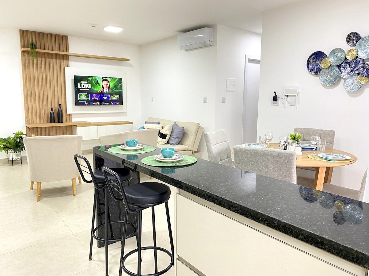 Просторная 3-х комнатная квартира в эксклюзивном жилом клубе с парковкой на 2 автомобиля. Наслаждайтесь кондиционером, оборудованной кухней, 50-дюймовым телевизором, высокоскоростным Интернетом, грилем и балконом с внушительным видом на гриль и балконом. 6 спальных мест. Высокоскоростной лифт Рядом с основными точками города. Забронируйте сейчас и получайте незабываемые впечатления! У нас есть юридический счет.
