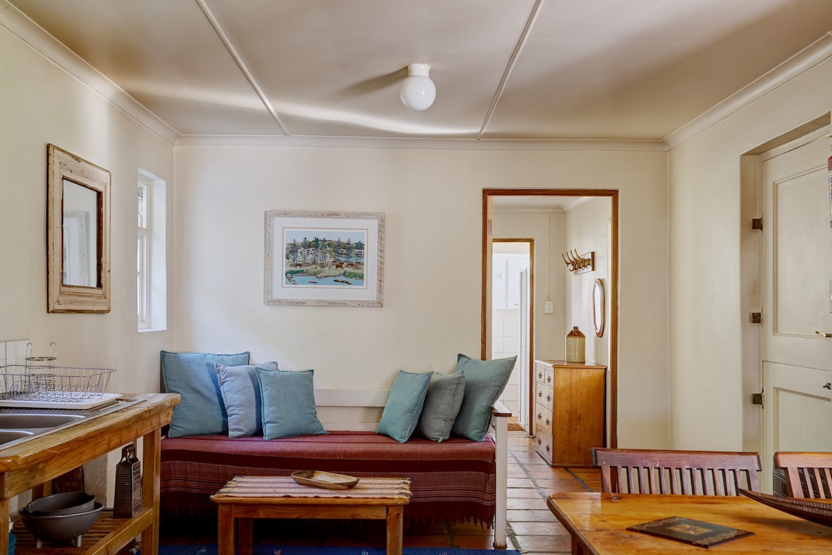 Теплое и уютное место для пар или небольших семей. В коттедже есть 2 спальни (внизу — кровать размера Queen size, наверху — двуспальный лофт) и 1 ванная комната. К услугам гостей гостиная со Smart TV (доступ к DSTV и Netflix), дровяной камин, полностью оборудованная кухня с аэрофритюрницей и индукционной плитой. В крытом патио есть обеденный стол, зона барбекю и кухонный остров на открытом воздухе с газовой плитой. К услугам гостей собственный сад с видом на горы. На территории обустроена парковка на 2 машины.