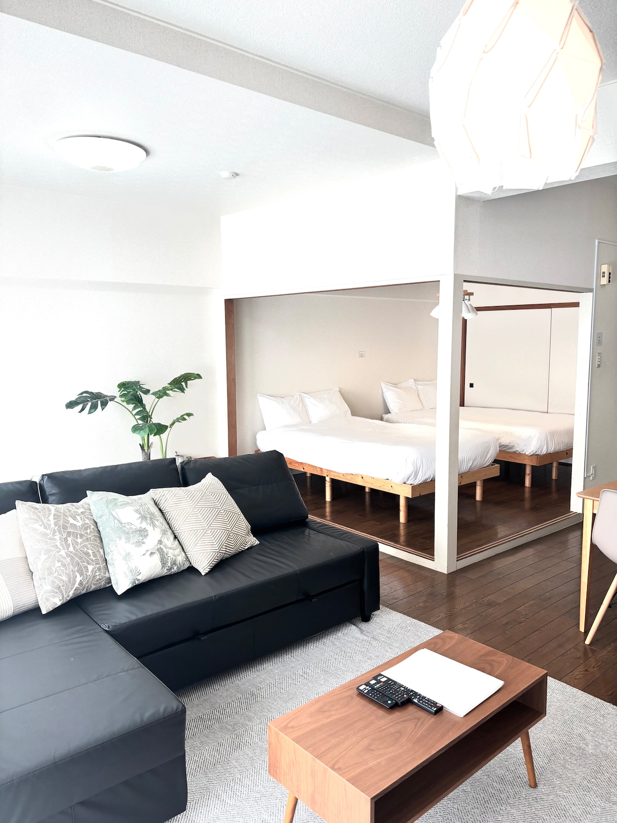 Новая 2-этажная квартира с 2 спальнями, расположенная в 2 минутах ходьбы от Музея бейсбола. 5 минут ходьбы от станции Хиросима. В каждой спальне есть 1 двуспальная кровать размера Queen size, на которой могут разместиться 4 человека. Она расположена на первом этаже с видом с балкона. Все постельные принадлежности соответствуют стандартам гостиничного качества с телевизором. Современный туалет с умывальником. С ванной и туалетной комнатой. Стиральная машина. Идеальное жилье в Хиросиме. Обратите внимание: уборка производится только после выезда.