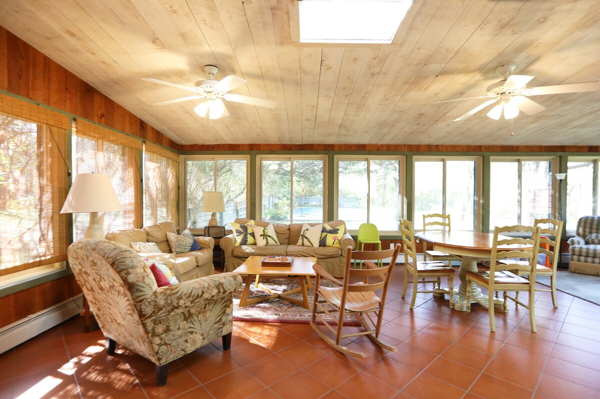 Мы приглашаем вас остановиться в нашем уютном доме в деревне Хай-Фолс. Двухэтажный фермерский дом начала 1900-х годов расположен на частной территории площадью 12 акров недалеко от тихой загородной дороги в прекрасном жилом районе. Территория с доступом к лесу и пруду + каноэ Roundout Creek. Большая солнечная семейная комната, разнообразные игры, просторная придомовая территория с мебелью в патио, подземный бассейн/терраса/барбекю/качели/костровище/гамак - идеальное место для отдыха и восстановления связи с природой, друзьями и семьей.