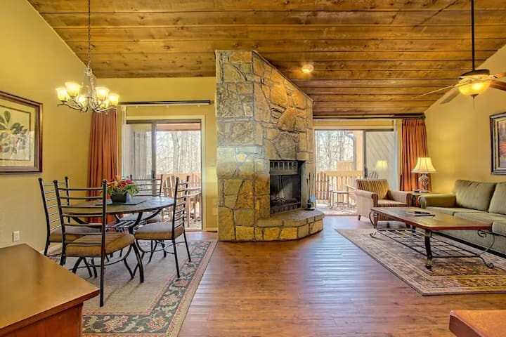 3 спальни, 2 ванные комнаты, 6-8 спальных мест Наслаждайтесь феноменальными видами на горы и озера с дальнего расстояния до самой Южной Каролины из просторных окон и крытой задней палубы этого высокогорного одноуровневого дома с тремя спальнями и двумя ванными. План на открытом этаже, камин, деревянный пол, гранитные столешницы, гараж и естественное освещение. Все удобства курорта, такие как гольф, теннис, крытый и открытый бассейн и гидромассажные ванны, озеро, водопады, весовая комната и катание на лыжах. Яркие горные рестораны и магазины!