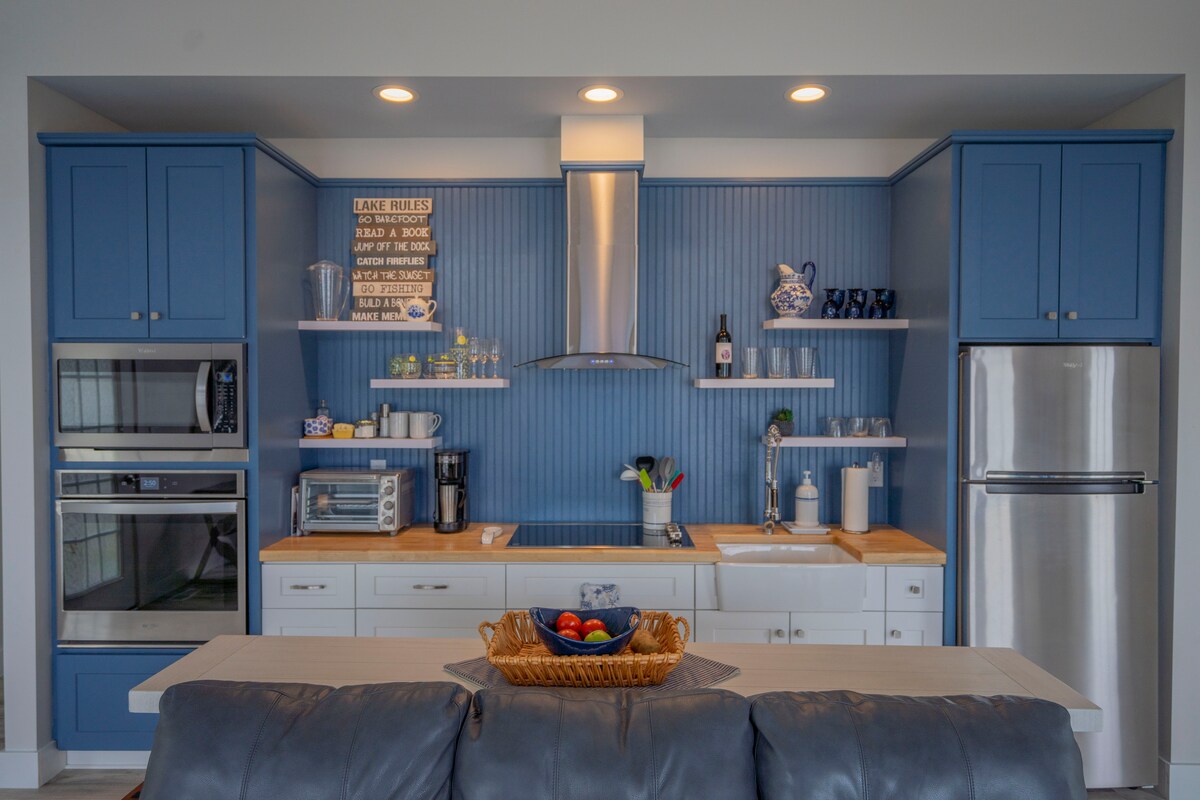 Познакомьтесь с роскошным жильем на берегу озера в нашем недавно построенном (июль 2021 года) с 2 кроватями и 2 ванными комнатами на озере Хай-Рок. С частным пирсом и 1 каяком + сапсерфингом насладитесь днем на воде, прежде чем приготовить ужин на гриле и расслабиться у костра. Смотрите свои любимые шоу на 70-дюймовом смарт-телевизоре или дрейфуйте, чтобы спать на кровати размера King size. С надувным матрасом размера Queen size могут насладиться комфортным пребыванием до 6 гостей. Откройте для себя скрытую жемчужину Северной Каролины, озеро Хай-Рок, с легкостью!