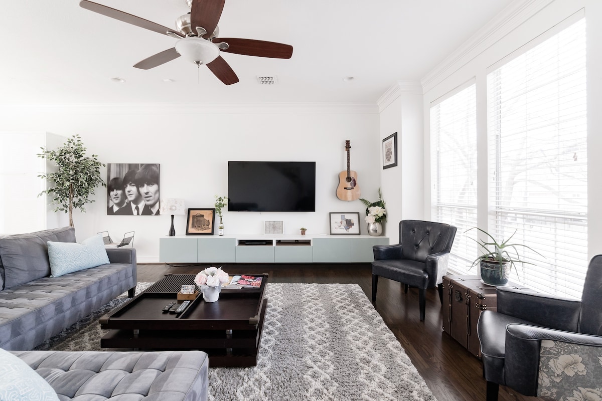 Excellent destination for lounging, shopping, exercising, working and dinning in Dallas. Take a morning stroll to the Katy Trail, then head back to lounge with your coffee. Create extraordinary memories with your family in the cheerful living room. Enjoy seamless technology to make your stay comfortable and productive. Downtown / Highland Park / Highland Park Village / North Park Mall /SMU/ Arts district / Design district / within minutes. Have a delightful stay at the heart of the city!