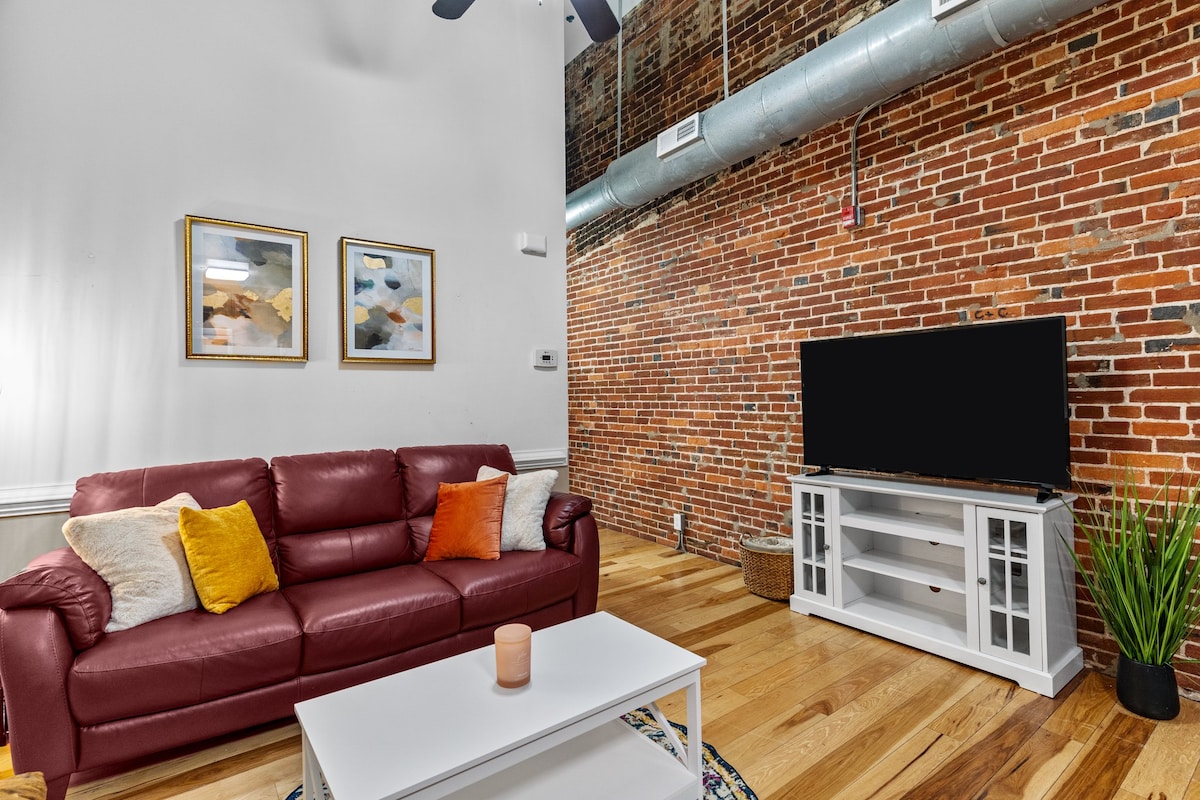 Просторный роскошный пентхаус площадью 2146 кв. футов в центре исторического района, где можно поесть ,поиграть и остановиться в одном сказочном месте. В этой многоуровневой квартире есть полностью оборудованная кухня, гостиная, столовая, 3 большие спальни, 2,5 ванные комнаты и выход на частную террасу на крыше и крыльцо. Стиральная машина/сушилка, телевизор, Wi-Fi. 4 кровати вмещают 8 гостей, а выдвижная кровать может вместить 9-го. Идеально подходит для нескольких гостей, краткосрочной аренды жилья или даже мероприятий. Расценки на середину недели и скидка 20% на длительный срок.