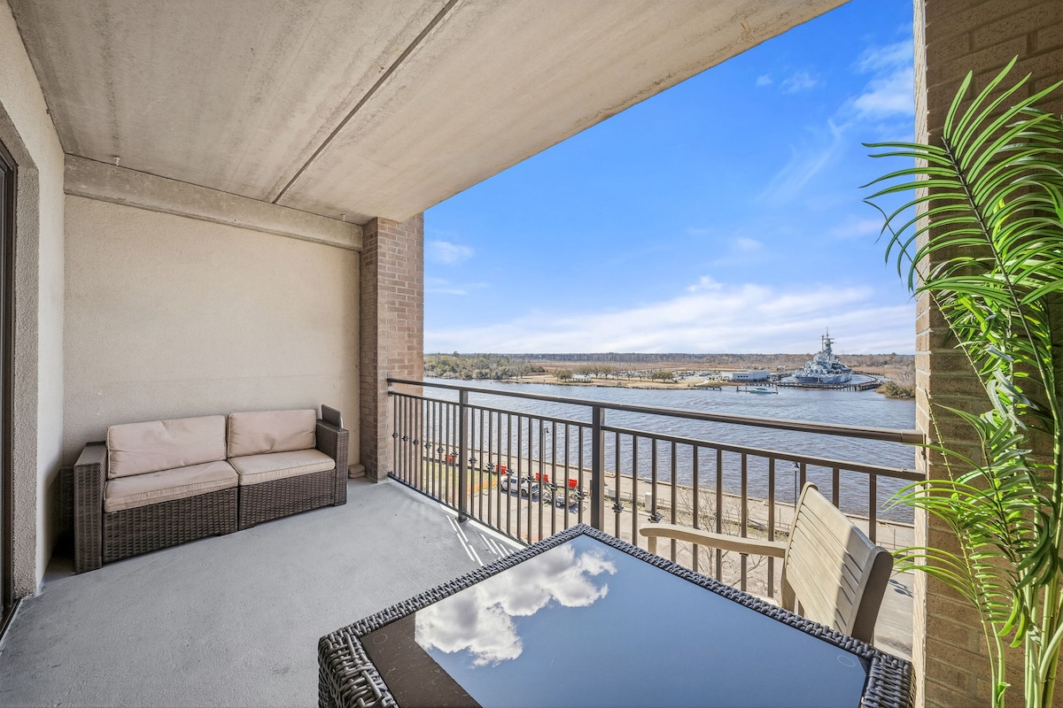 Частная квартира с 1 спальней в центре города на 5-м этаже с видом на реку, отдельным балконом и парковкой Рядом с UNCW, Live Oak Bank Pavilion, конференц-центром Уилмингтона и пляжем ★ «Фантастическое расположение и чистота в квартире. Настоятельно рекомендую!» ☞ Отдельный балкон с уличной мебелью. ☞ Вид на реку и линкор NORTH CAROLINA ☞ Полностью укомплектованная кухня ☞ Парковка в гараже включена (1 автомобиль, за пределами территории). ☞ Стиральная и сушильная машины на территории. ☞ Отдельное рабочее место ☞ 2 телевизора Smart TV. ☞ Быстрый Wi-Fi (328 Мбит/с).
