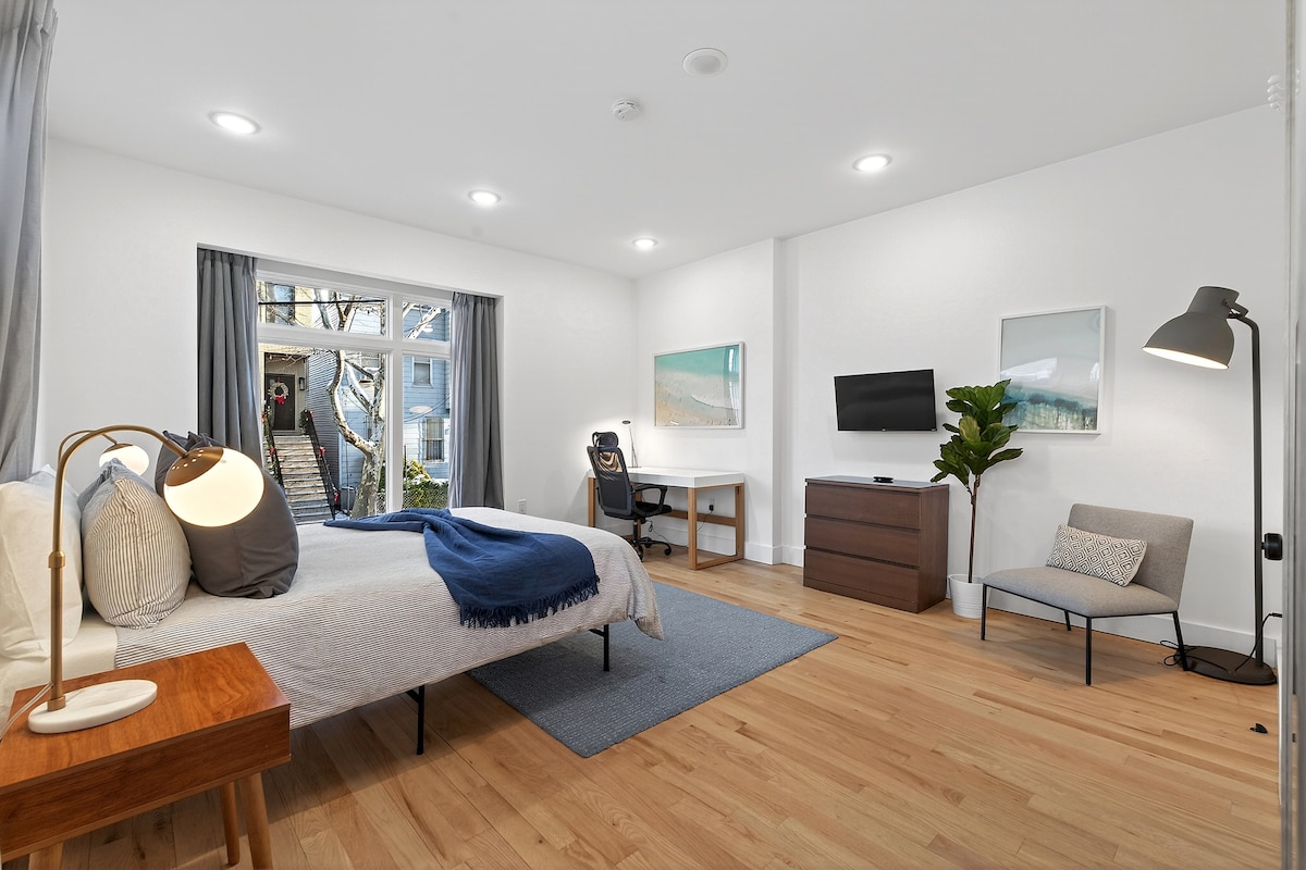 High-demand luxury 4BR minutes from Manhattan—#1 choice for families, groups, and business travelers needing space, comfort, and unbeatable NYC access. Features 2 king beds, 1 queen, bunk bed, Smart TVs, fast Wi-Fi, full kitchen, dishwasher, in-unit washer/dryer, and keyless entry. Walk to restaurants, shops, transit, and Hudson River NYC skyline views—your top-performing home base for NYC vacations, work trips, and long stays.