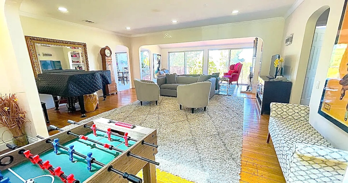 Современный дом с 2 кроватями и 2 ванными комнатами с потрясающим видом на Сансет-Стрип (2 квартала от Голливуда + Фэрфакс). Всего в нескольких кварталах от места действия, но очень уединенно и тихо. Недавний ремонт от крыши до основания, система обогрева/кондиционера, 1 Wi-Fi Giga/sec, проводной с 11 динамиками, кинопроектором + двумя телевизорами 4K (бесплатный Netflix, HBOMax и AppleTV+), парковка на 2 автомобиля с электрическим зарядным устройством уровня 2. Обратите внимание: никаких общественных собраний или поздних, громких ночей. Интерьер = 1015 кв. футов Терраса = 300 кв. футов