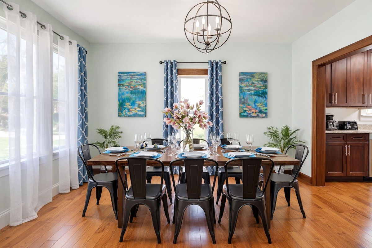 Насладитесь городом в стиле Retro Modern Bungalow, идеальное место для 4 друзей. Две просторные спальни, каждая с кроватью размера King size и роскошным постельным бельем, пропановая костровая яма и полностью огороженный задний двор, подходящий для собак. Центральная система отопления, вентиляции и кондиционирования, быстрый Wi-Fi и отдельное рабочее место. Детская кроватка предоставляется бесплатно. Центральное расположение к югу от Оук-Парка, 15 минут от аэропорта Мидуэй и 20 минут от центра города. Припаркуйтесь бесплатно в нашем гараже или сядьте на поезд в нескольких кварталах.