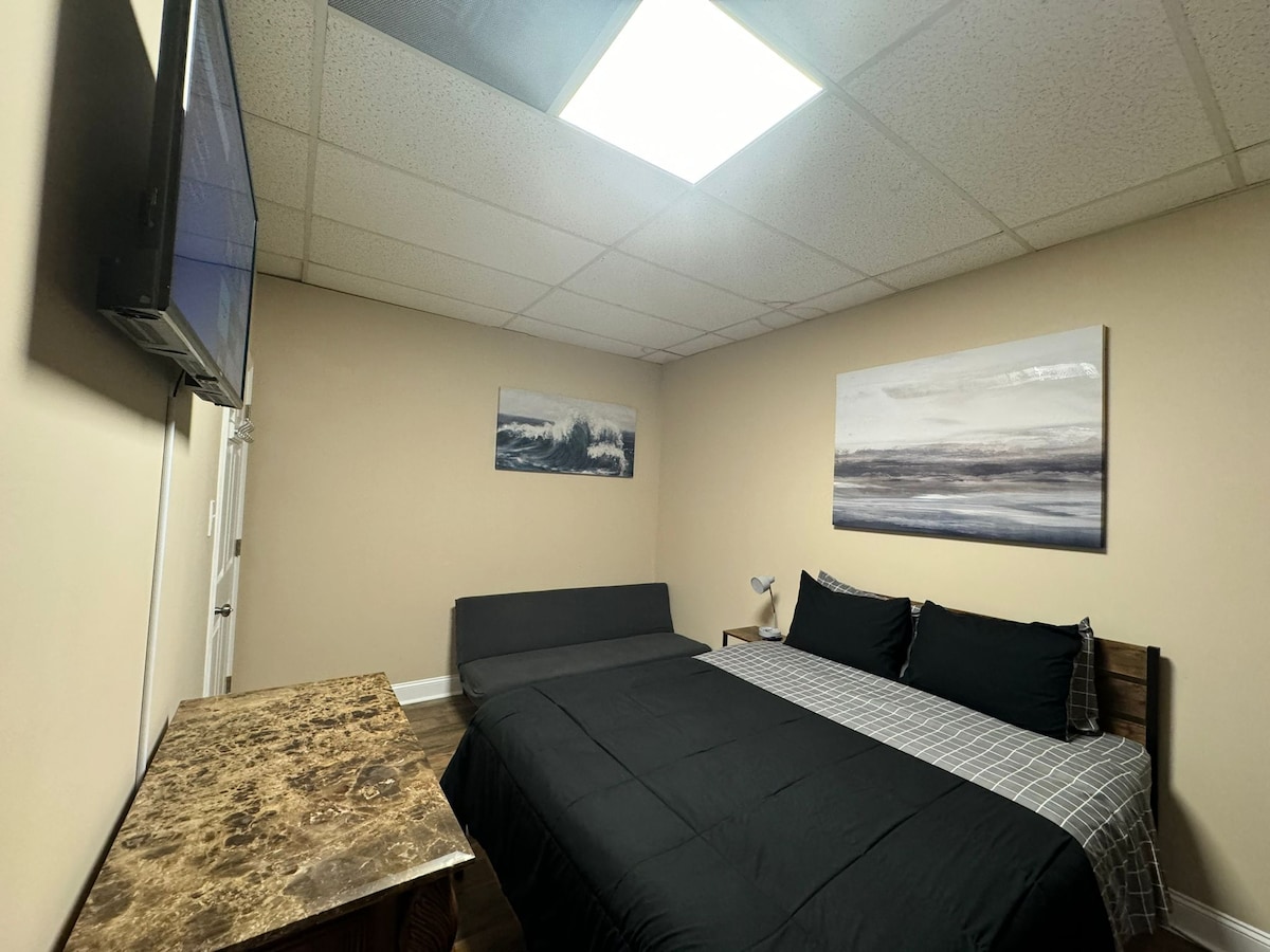 Добро пожаловать в нашу стильную квартиру-студию! Включено: *двуспальная кровать размера King size. *затемняющие шторы *утюг и гладильная доска; *совершенно новая ванная *элегантная мини-кухня с новой техникой. * холодильник размером с квартиру с морозильной камерой; *рабочее место *высокоскоростной Wi-Fi; *50-дюймовый телевизор *отдельное крыльцо; *бесплатная парковка *сейф *10-15 минут до центра города. * Можно с питомцами, независимо от того, приезжаете ли вы по делам или для отдыха, это жилье предлагает идеальное сочетание стиля, комфорта и удобства. Бронируйте сейчас и наслаждайтесь городской жизнью в лучшем виде!