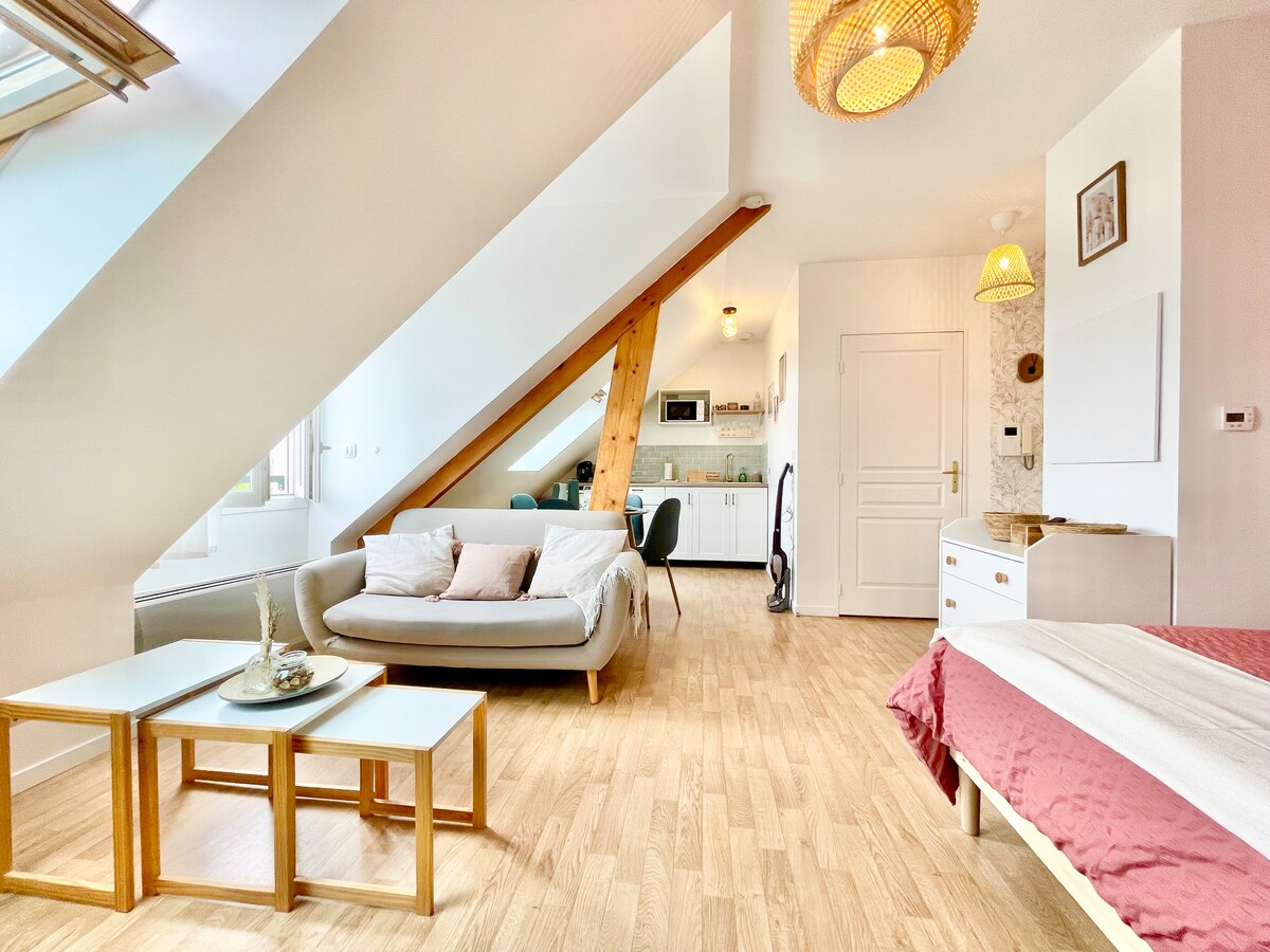 Откройте для себя эту красивую отремонтированную квартиру-студию, идеально расположенную в центре Онфлера, в 10 метрах от порта и в 2 минутах ходьбы от площади Сент-Катрин. Наслаждайтесь большим балконом, обращенным на юг, с потрясающим видом на весь город. Кровать размера Queen size 160x200, оборудованная кухня, современная ванная комната. Расстояние до бесплатной парковки составляет 500 метров. Жилье расположено в тихом и безопасном доме с лифтом для людей с ограниченными возможностями. Гибкое время прибытия. Отлично подходит для идеального проживания для двоих!