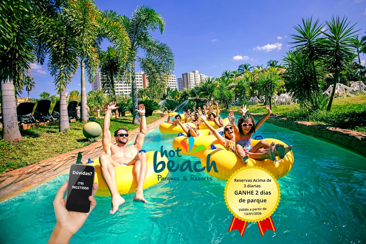 Hospede-se no Hot Beach. Divirta-se com toda sua família, Olimpia está cada dia mais completa sendo conhecida como a Orlando Brasileira. As Segundas-feiras os parque não abrem, porém o Resort conta com muitas opções de lazer, tendo um parque aquático inteiro em seu quintal. Além de muitas piscinas a noite tem a VILA GUARANI para descansar ouvindo musicas e show temáticos, isso tudo GRATIS ao se hospedar no Resort Hotbeach Suits. Detalhe faça tudo a pé! Acesso ao parque por R$139, p/dia e p/apto