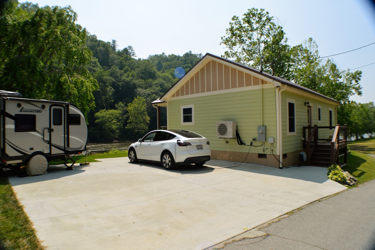 Домик с тремя спальнями отлично подходит для пар или семей. До Аппалачской тропы и Национального леса всего 100 футов от входной двери! На хорошо укомплектованной мини-кухне есть все необходимое для приготовления еды, а до города Хот-Спрингс всего две минуты езды. Новости об урагане «Хелен»: нам повезло, что наше жилье находится выше и не затопилось. Благодаря напряженной работе многих людей все коммунальные услуги были восстановлены в хижине. Наш город восстанавливается.