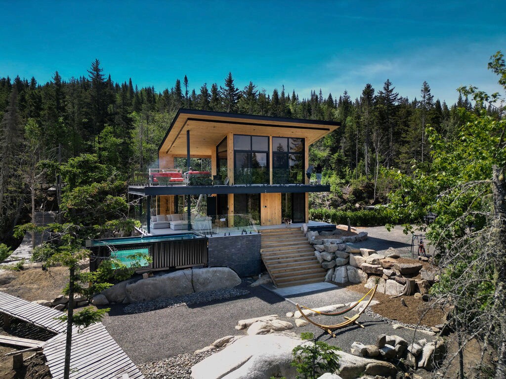 Évadez-vous dans cette micro-maison perchée au sommet d'une montagne et admirez la vue panoramique sur les sommets environnants à travers ses murs de verre. Détendez-vous dans le spa, accessible en toute saison, tout en profitant des plus beaux couchers de soleil. Découvrez ce trésor caché au cœur de la forêt boréale canadienne, alliant confort et fonctionnalité en toute saison. Une expérience intime et inoubliable, près de la ville mythique de Québec, classée au patrimoine mondial de l’UNESCO.
