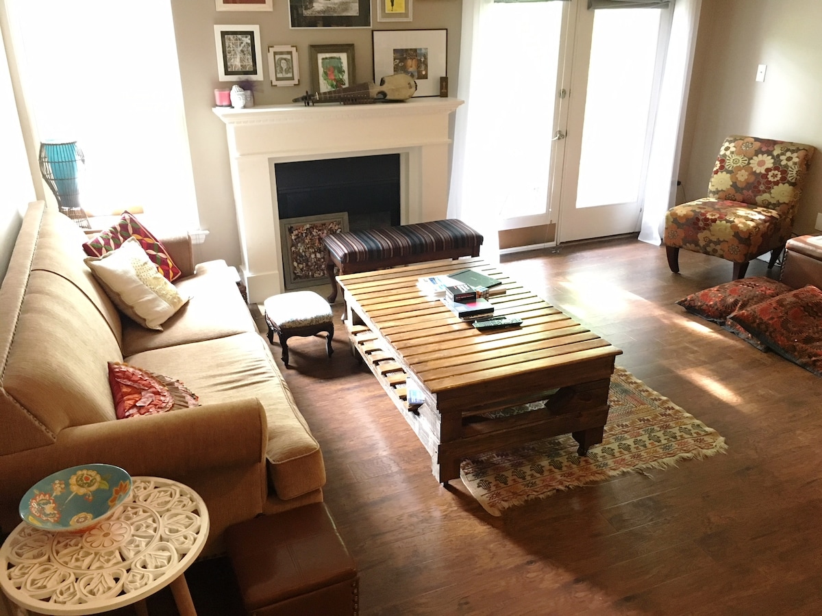 Двухкомнатный гостевой люкс с отдельным входом расположен в живописном Катонсвилле, штат Мэриленд, на доколониальной дороге, изначально использовавшейся для перевозки табака в гавань. Центр Балтимора находится в 20 минутах езды, аэропорт BWI и вокзал Amtrak - в 15 минутах, а наша улица расположена на автобусном маршруте. Красивая 3,5 мили пешком до исторического Элликотт Сити и в часе езды от Вашингтона, округ Колумбия. Частные лица и семьи с детьми приветствуются, но участник Airbnb, сдающий жилье, должен быть старше 25 лет.
