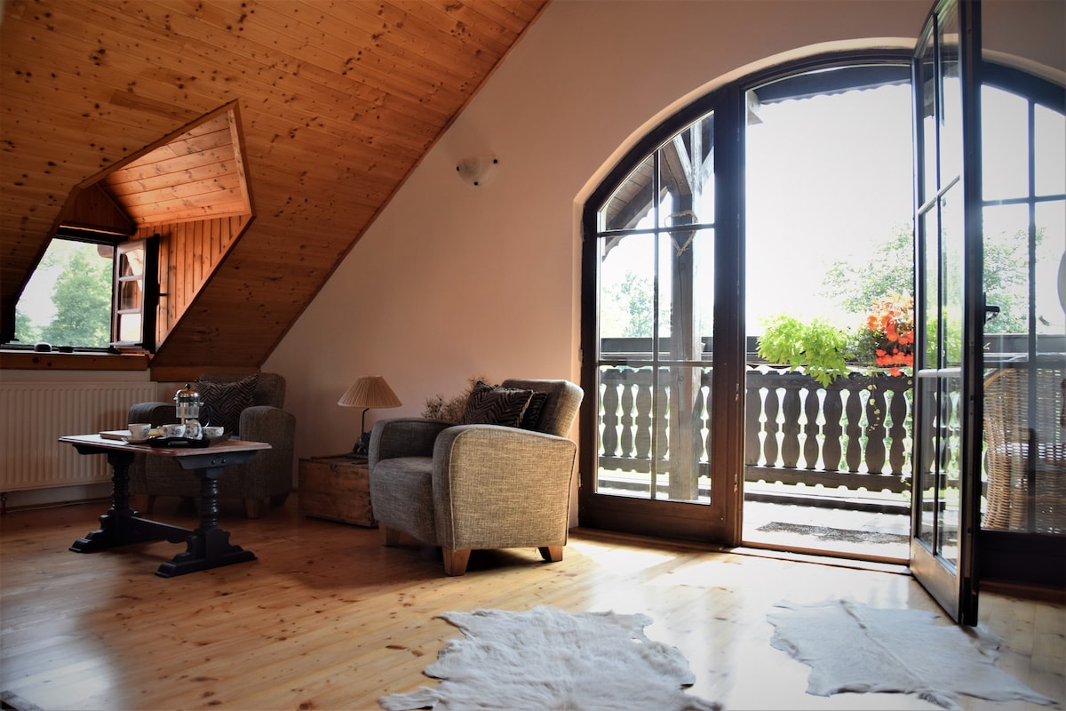 Эти апартаменты сочетают в себе отличное расположение, роскошное оснащение и комфорт. Если вам нужно место для работы, здесь вы будете чувствовать себя как в офисе. Если вы хотите отдохнуть, в вашем распоряжении удобный кожаный диван с большим телевизором и платными программами или качественная двуспальная кровать. Вы можете комфортно готовить на современной кухне и сидеть за обеденным столом. Кроме того, элегантная ванная комната, просторная гардеробная, терраса и собственная парковка прямо у дома бесплатно и без стресса. Рядом находится красивый лес с велосипедными дорожками.