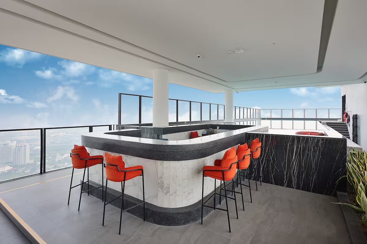 Остановитесь в современном кондоминиуме с непревзойденным плюсом: панорамным бассейном на крыше на 37 этаже, где можно плавать над горизонтом и наслаждаться захватывающим видом на Бангкок. В жилье также есть: • Стильный клуб с зонами отдыха. • Удобное коворкинг-пространство для удаленной работы. • Полностью оборудованный фитнес-центр и расслабляющая сауна. • Терраса на крыше с шезлонгами для городской атмосферы. Идеально подходит для пар, цифровых кочевников и путешественников, которые хотят комфорта и азарта в Бангкоке.