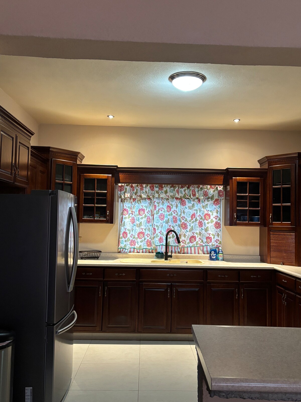 Семейный дом с 3 спальнями, холл, гостиная, кухня, кухня, столовая и прачечная. К услугам гостей парковка на 3 машины.