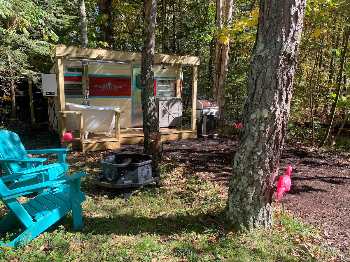 Ретро-глэмпинг в лесу | Гидромассажная ванна | Рядом с поездом до Нью-Йорка