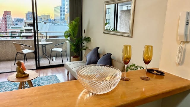 Эта уютная квартира с одной спальней, расположенная в одном из самых безопасных районов Сантьяго, предлагает вам незабываемые впечатления во время вашего пребывания. С балкона квартиры открывается прекрасный вид на город, горный хребет и торговый центр Costanera Center. Всего в нескольких шагах вы найдете множество ресторанов, кафе, баров, магазинов и супермаркетов. Кроме того, отличная связь в районе позволит легко передвигаться по городу.