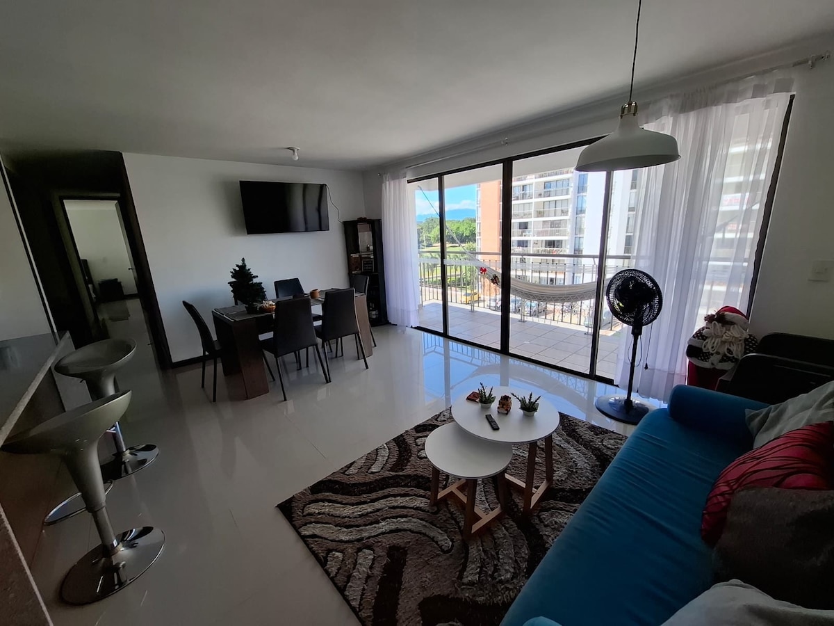 Ingram @bestairbnbcali (videos) A 7 minutos del centro en el barrio granada, encuentras este hermoso apartamento con diseño nórdico, único en la ciudad, con la mejor ubicación, cerca a todos los sitios turísticos y a pocas cuadras de los bares y restaurantes de moda, además un mall a 5 minutos con gym y supermercado. Tiene un Jacuzzi grande privado en la terraza con agua CALIENTE, con una hermosa vista a un bosque, ademas sala de cine. Comparte la portería principal con la otra casa.
