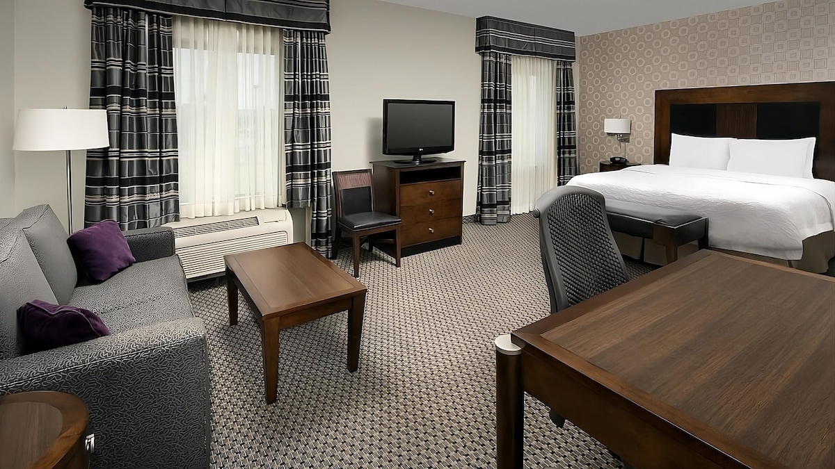 each out to me directly to save 20% on your booking💰 Welcome to your stylish King Suite, nestled in the heart of Rocket City, this modern space blends comfort for a seamless stay. Relax and recharge with access to these fantastic perks: • 🏊♂️ Pool • 💪 Gym • 🎉 Paid Breakfast Buffet on site Whether you're here to explore the U.S. Space & Rocket Center, hike Monte Sano’s scenic trails, or power through a business trip, this is your perfect home base. Discover Huntsville with ease! 🚀