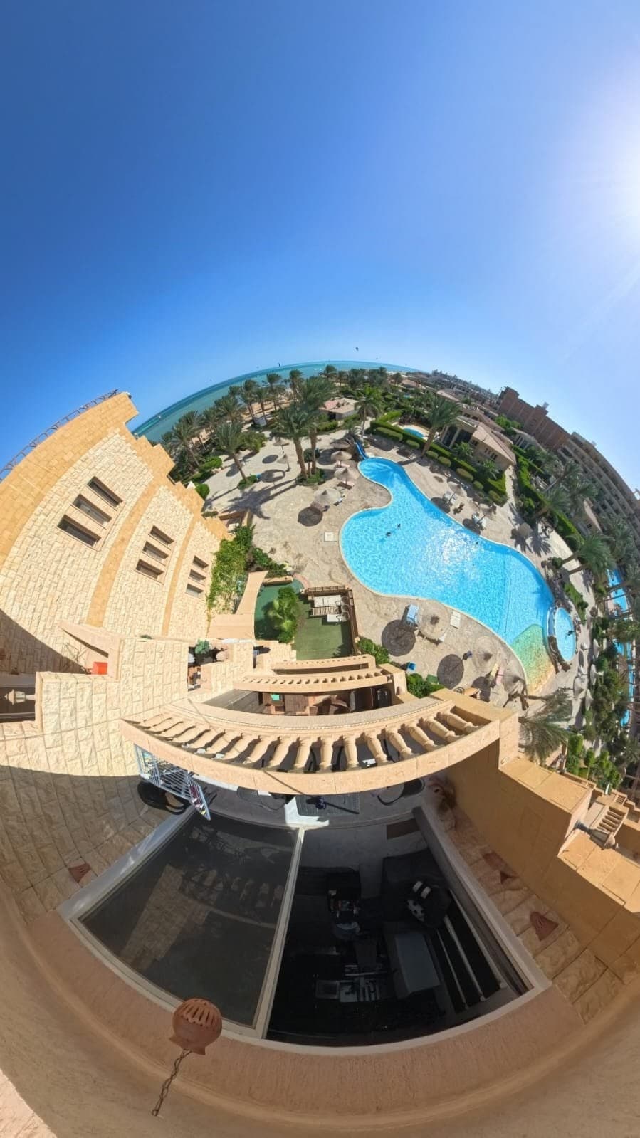 Relax in our cozy sea-view studio in central Hurghada, right by the Red Sea. Perfect for couples, solo travelers, or small families looking for comfort, great location, and resort vibes near the city center. What You'll Like: Free private beach and swimming pool access Red Sea and pool views from your private balcony Prime location on Old Sheraton Street – close to cafes, shops, nightlife & supermarkets Free Wi-Fi, 24/7 security & on-site parking Complimentary shuttle bus within the resort