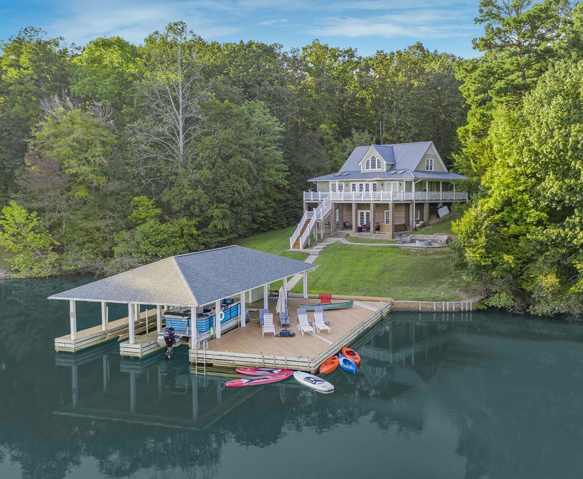 Просторный дом на берегу озера с огромным причалом и просторным видом! Отдохните с друзьями и родственниками в доме с 5 кроватями/4 ванными комнатами на набережной на 14 человек. Док-станция площадью 2500 кв. футов имеет красивое патио, 2 лодочных подъемника и гидроцикл. Каякинг и САПСЕРФИНГ. В главном доме есть большая терраса с потрясающим видом на закат, патио на 15 человек, 2 полноценные кухни и игровая комната. Отдохните на озере с играми на лужайке, в гамаке и у костра. Приезжайте, чтобы у вас остались воспоминания!