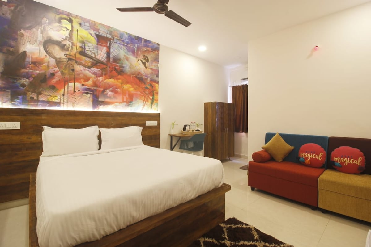 Современный бутик-отель прямо в центре Мадхапура. Наши номера, сочетающие стиль и комфорт, отличаются современным декором, мягкими матрасами, приятным освещением и свежей, чистой эстетикой. К услугам гостей высокоскоростной Wi-Fi, телевизор со Smart TV, рабочий стол и ванная комната премиум-класса. Выйдите на улицу, и вы окажетесь в нескольких минутах от HITEC City, корпоративных офисов, кафе, ночных клубов и самого оживленного района Хайдарабада. Идеально подходит для путешественников, которые ценят удобство и расслабляющий городской отдых.