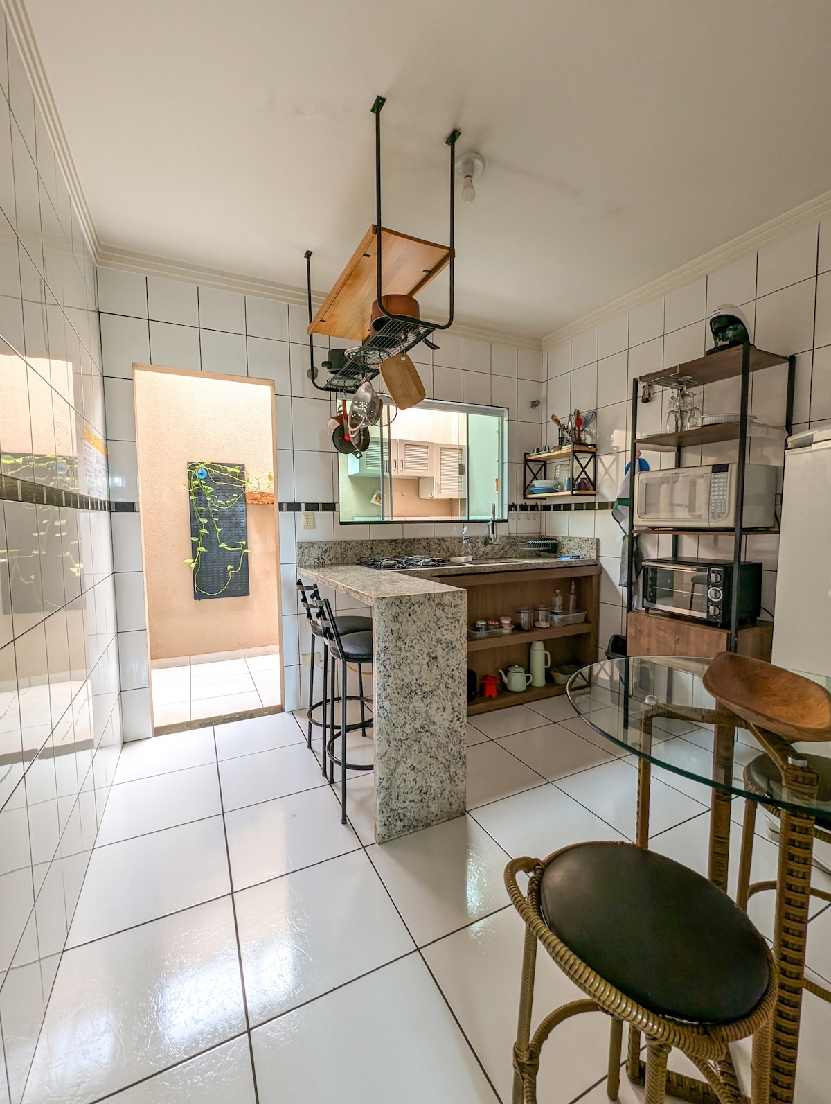 Уютный контейнерный дом рядом с северным торговым центром в Лондрине, с 2 спальнями, 1 двуспальной кроватью размера Queen size, 1 односпальной кроватью, 1 матрасом на полу, 1 кроватью Safá, 1 ванной комнатой, 1 туалетом, панорамным видом на город и торговый центр, гостиной с телевизором, кондиционером, Wi-Fi, Netflix, полностью оборудованной кухней, изысканным пространством с барбекю, частной парковкой на 2 машины и прачечной. Наслаждайтесь пребыванием в Лондрина-Пре в самом очаровательном контейнере города.