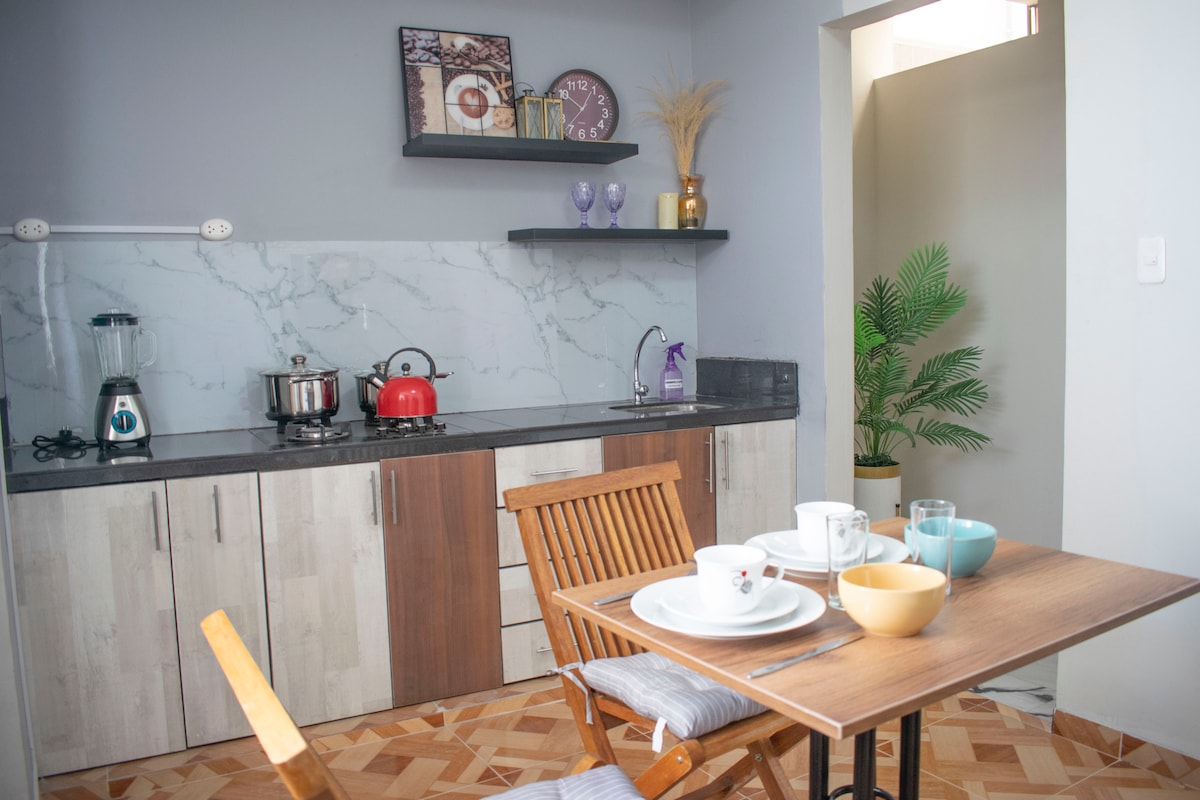Красивая квартира с двуспальной кроватью размера Queen size для 2 человек, расположенная на втором этаже, телевизор, ванная комната, доступ к полностью оборудованной кухне. Если вы хотите посетить оазис Уакачина, мы находимся очень близко. Вы можете прогуляться днем или взять такси, Uber или мототакси. Если вы приезжаете в город по работе, мы также находимся недалеко от Социального центра, супермаркетов Plaza Vea, Megaplaza, Plaza de Armas. На главном проспекте вы найдете различные рестораны.