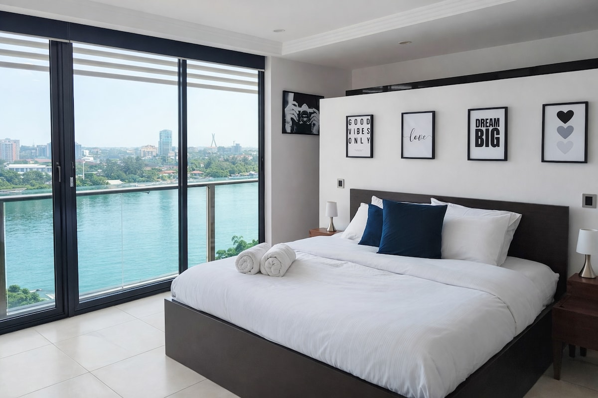 Wake up to beautiful lagoon views from the 14th floor and unwind in the heart of Victoria Island. This bright, modern 2-bedroom apartment is ideal for holiday stays,offering space, comfort, and a peaceful escape after exploring Lagos. Enjoy a stylish living area, fully equipped kitchen, fast WiFi, and optional cleaning during your stay. Complimentary airport pickup is included for bookings of 10+ nights. Located inside secure 1004 Estate, close to beaches, dining, and nightlife.