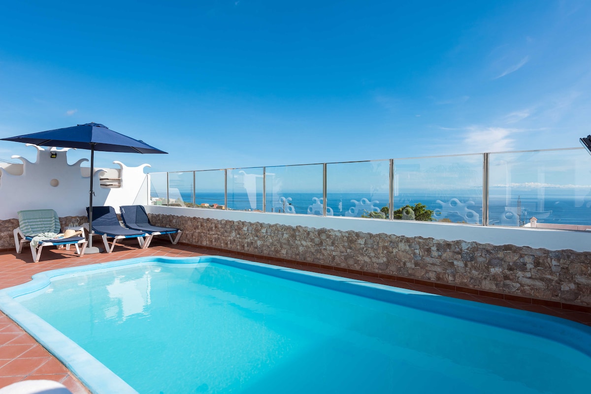 Отдохните в этом уникальном месте с бассейном только для вас и потрясающим видом на море и горы. Все это в традиционном канарском доме, спроектированном как для уютного интерьера, так и просторного экстерьера. Вы сможете поесть в ландшафтном патио на открытом воздухе, освежиться и позагорать в бассейне (только для гостей дома) и собрать фрукты и овощи в саду. Частная парковка рядом с жильем. Дети до 12 лет не допускаются.
