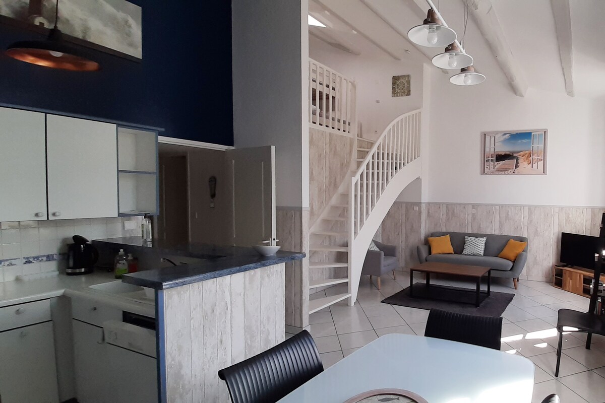 В порту Сен-Мартен-де-Ре, в тихой и безопасной резиденции, отремонтированная квартира на одном уровне со спальней, ванной комнатой, отдельным туалетом, парковочным местом в резиденции, а также велосипедной комнатой. Пекарня и все магазины находятся на выходе. Жилье оборудовано посудомоечной машиной, многофункциональной духовкой, индукционной плитой, сенсео, чайником, тостером, стиральной машиной. К услугам гостей 2 кровати в 160 Постельное белье включено в стоимость.