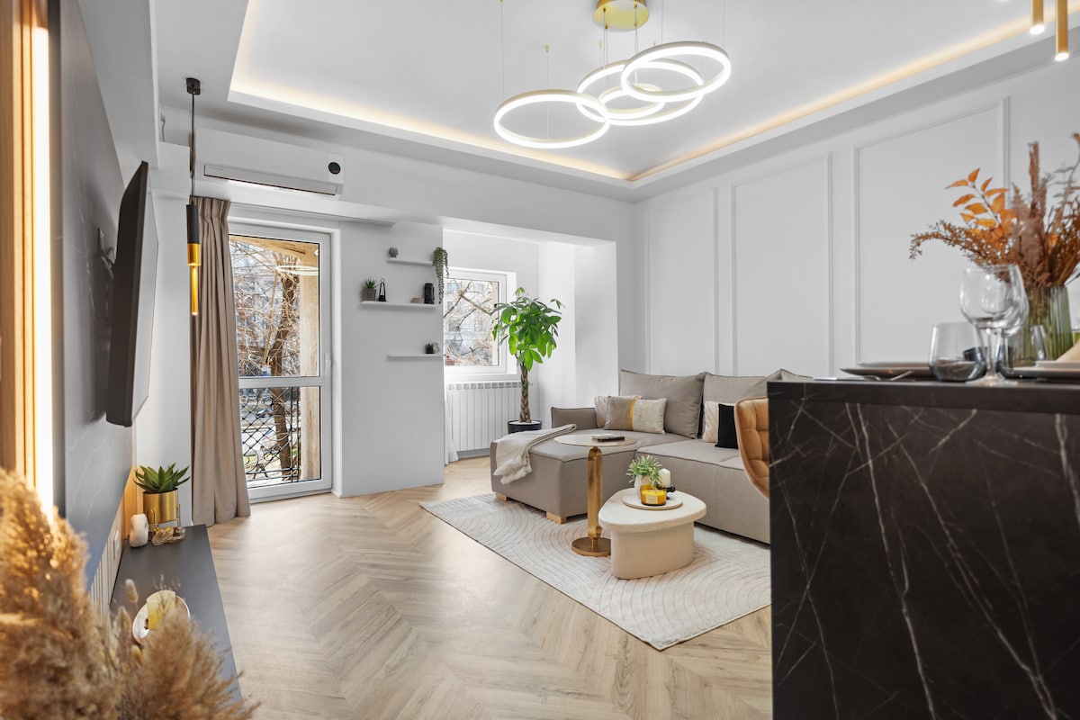 - Первоклассное расположение: в центре города, недалеко от основных достопримечательностей Бухареста, но в тихом районе для спокойных ночей. - Премиум-комфорт: насладитесь роскошной кроватью премиум-класса для спокойного сна и 55-дюймовым телевизором 4K UHD QLED Smart TV для вашего досуга. - Полностью оборудованная кухня - Гарантия чистоты: личный персонал по уборке -> ежедневная чистота. - Бесплатная парковка на нашей парковке (видеонаблюдение).