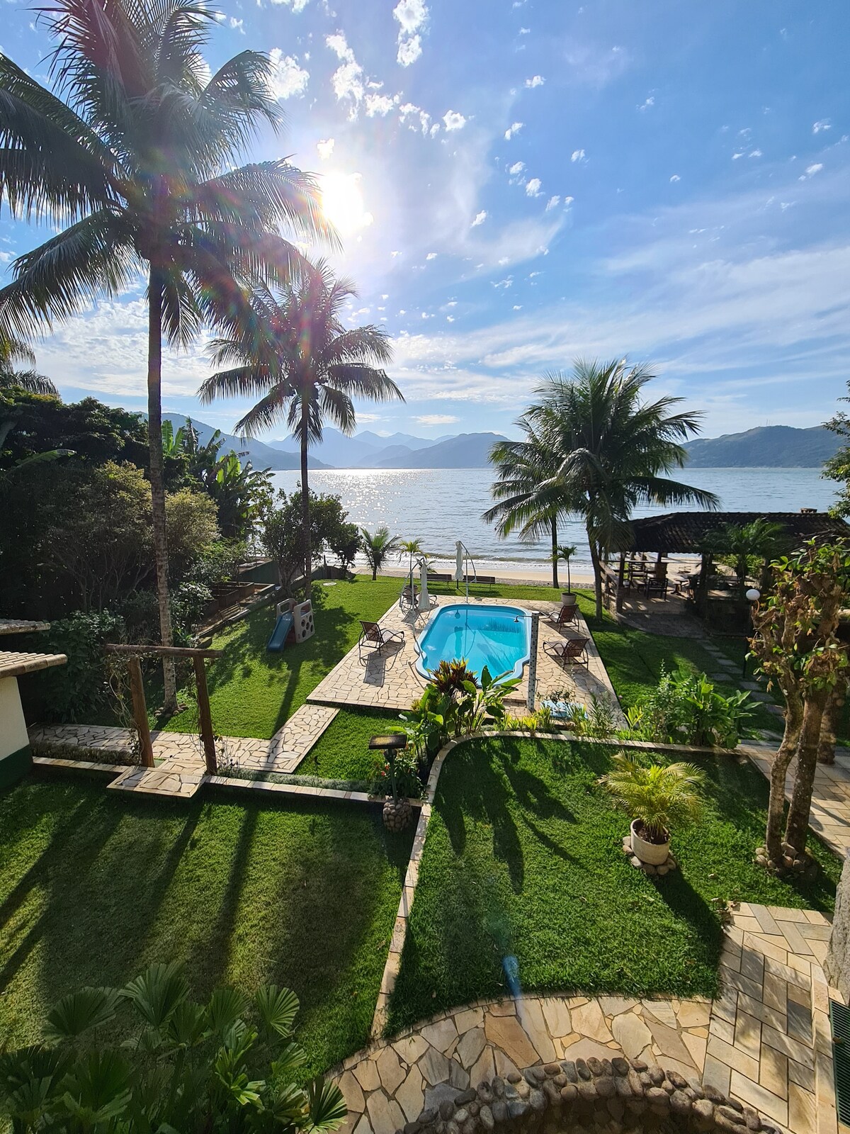 Двухэтажное шале и смотровая площадка с видом на море в окружении Атлантического леса. К услугам гостей 2 спальни, офис, верхняя палуба с выходом в беседку, оборудованная кухня, ТВ-комната с Netflix, ванная комната, полностью огороженный задний двор, душ, барбекю и сад с фруктовыми деревьями. У нас есть Wi-Fi на всей территории отеля. Мы находимся всего в 10 минутах от пирса и в 7 минутах от магазинов Vila do Abraão. Здесь это не просто жилье, а впечатление погружения в природу :⋆-⋆)