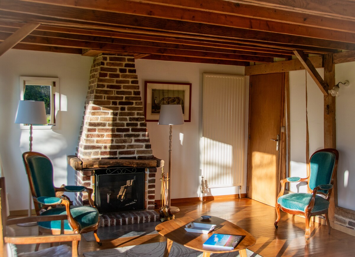 Очаровательный одноэтажный дом с дровяным камином на юг, выходящим на запад, частный сад и терраса. Это милое место, расположенное в здании дома владельцев, расположено на краю тихой улочки с большим парком с деревьями, природой и лугами в качестве соседей. Это место, недалеко от Baie de Somme, моря и леса, идеально подходит для выходных, отпуска или удаленного отдыха для пар или семей.