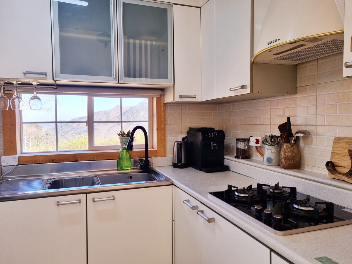 * Обновление дома * Мы открываем жилье для комфортного путешествия для клиентов, которые посещают Gugoksanbang Nelujae. Обновление спальни Мы установили 2 кровати размера Queen size и диван-кровать размера Queen size, чтобы семьи до 4 человек могли комфортно разместиться. Ремонт в ванной Отремонтированный дом с 2 аккуратными ванными комнатами и большой ванной с тонким ароматом кипариса подарит вам освежающий лесной отдых и теплый отдых. Обновление двора В частном барбекюшнике установлена мини-кухня. Мы обновили зону для костра. Вэлли Реньюал Мы обновили частное пространство в долине, установив красивую беседку и шезлонги. * Приветственная еда предоставляется при подаче заявки на барбекю * Если вы воспользуетесь услугой барбекю, мы приготовим рагу мисо и кимчи, чтобы они сопровождали еду для барбекю в качестве приветственной еды.