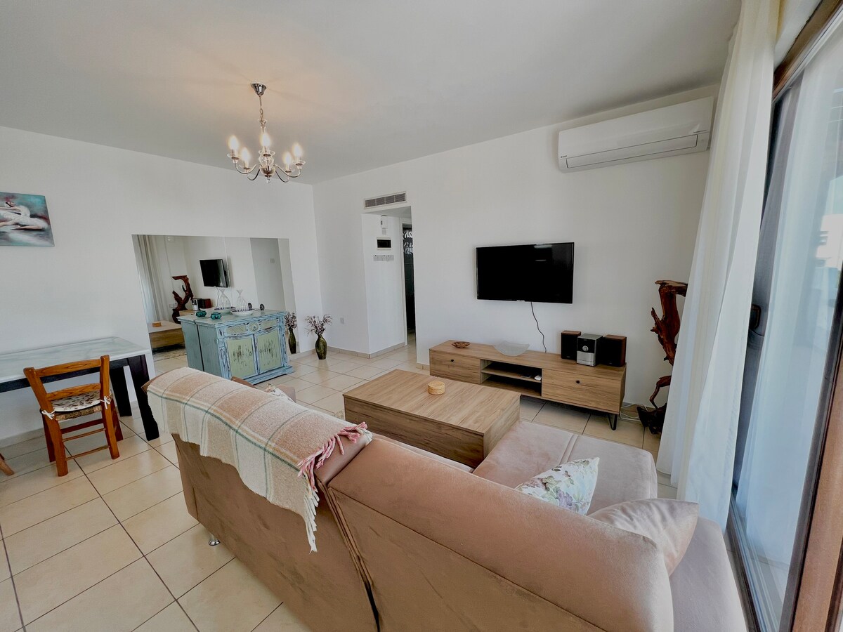 Наш роскошный пентхаус расположен среди оливковых деревьев и ждет вас для спокойного отдыха. Отели Merit Hotels, крупнейшая концепция в регионе, находятся в 5 минутах езды, а рестораны и большие рынки — в 2 минутах езды на машине. Терраса в вашем полном распоряжении. 🚭 Не курить в квартире. 🐾 Мы не можем принимать наших питомцев. 🏡 Стильный и удобный дизайн 💦 В нашем доме есть система очистки питьевой воды. ⚡️Есть генератор и бак для воды на случай отключения электроэнергии.